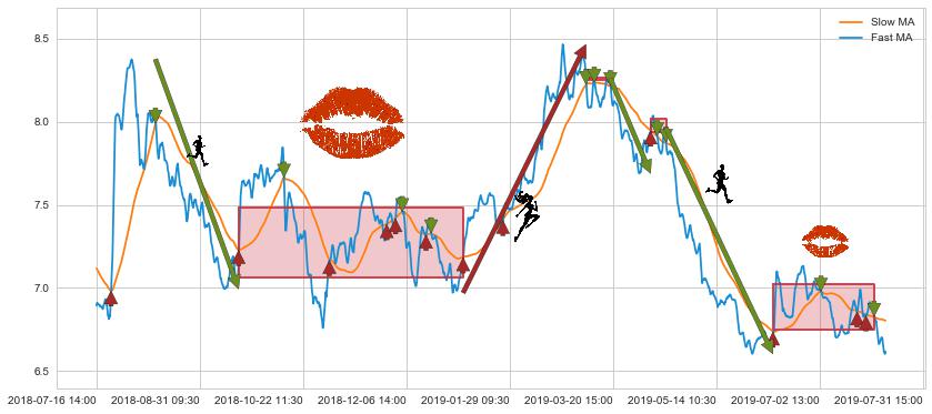 06-10 13:00至07-26 10:30 慢线与快线多次接触,存在上下穿越,有缠绕