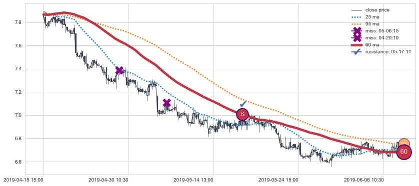 ⚂ 2019-07-15 14:00:00小时突然冒出一根大阴线,一下子下穿三条均线且收盘价收在各条均线之下