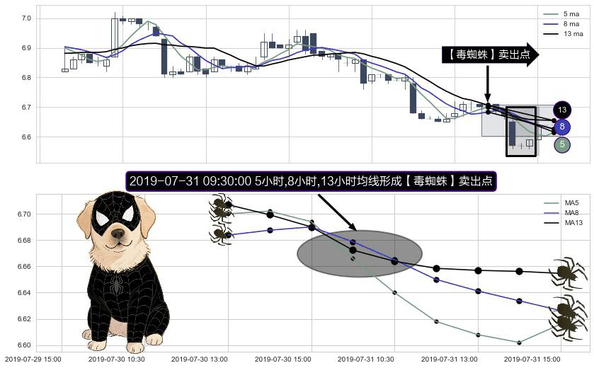 ⚀ 2019-07-31 09:30:00小时显现 5小时-8小时-13小时均线 【毒蜘蛛】卖出点 看空信号,后市看跌,卖出