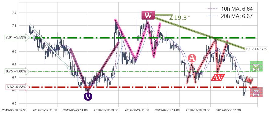 ♘ 阻力价格位6.75,可信任强度41.32%,距离最后交易2019-07-31 15:00形成的收盘价格6.64相差 +1.60%