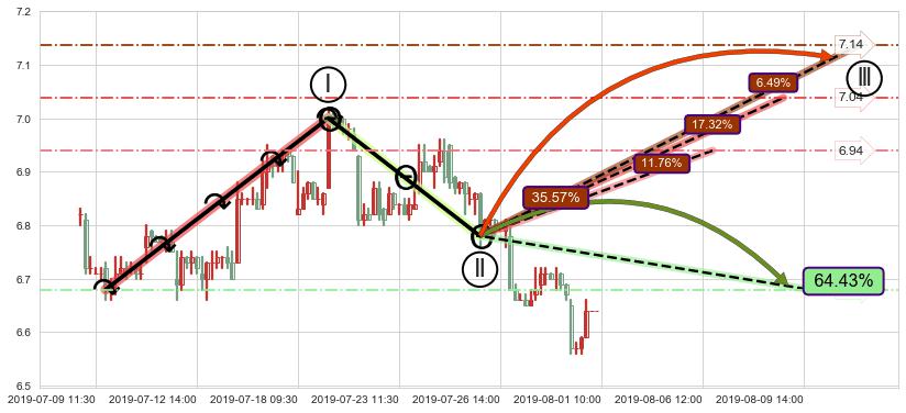 ➢ 循环浪继续向上【最低】位置(08-06:14, 6.94),匹配聚类样本比例33.06%, 可能性概率11.76%