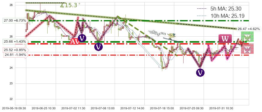 ♘ 阻力价格位27.00,可信任强度80.98%,距离最后交易2019-07-31 15:00形成的收盘价格25.30相差 +6.73%