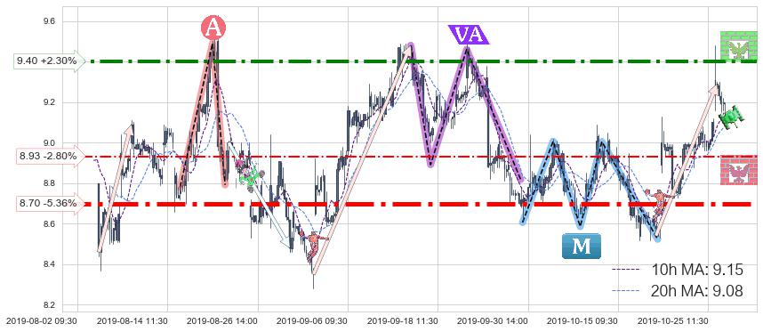 ♘ 阻力价格位9.40,可信任强度71.57%,距离最后交易2019-10-28 15:00形成的收盘价格9.19相差 +2.30%