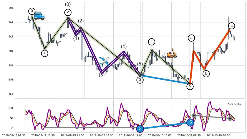 ➢ a,c调整浪KDJ走势未出现明显背离