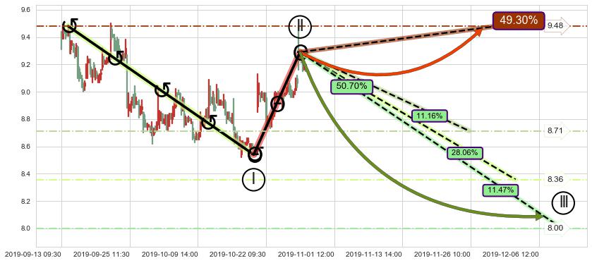 ➢ 预测:2019-10-29 10:00,【小幅回撤】稳定目前上涨趋势的前提下,预测价格:9.16