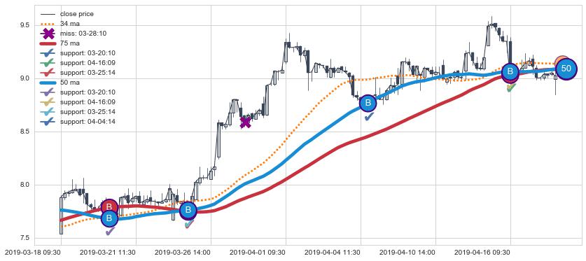 上涨趋势03-18 09:30-04-18 09:30,均线50, 75确认关键支撑4处