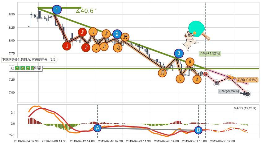 ➣ 预测:2019-08-05 14:00,【试探阻力】稳定目前下跌趋势的前提下,预测价格:7.29