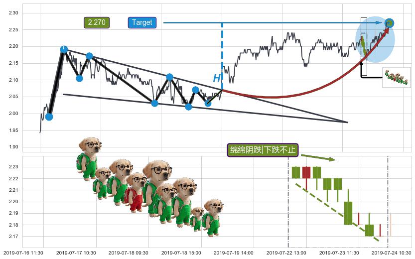 ♘ 支撑价格位2.162,可信任强度92.51%,距离最后交易2019-07-31 15:00形成的收盘价格2.270相差 -4.77%
