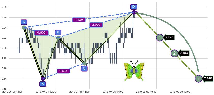 ➣ 已完成【蝴蝶】形态起点X: 06-21:09, 终点D: 07-31:11, 共165交易小时