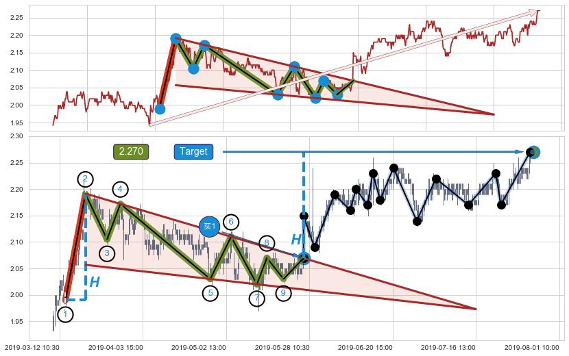 ➢ 最小中继整理涨幅→𝐇: 0.201000 (𝐇楔型旗杆的长度:楔型起点→顶点)