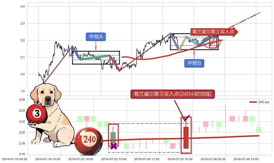 从2019-06-27 14:00至2019-07-23 14:00,共包含103个小时,阶段股价上涨1.49%,阶段股价变动位移路程比: 1 : 20