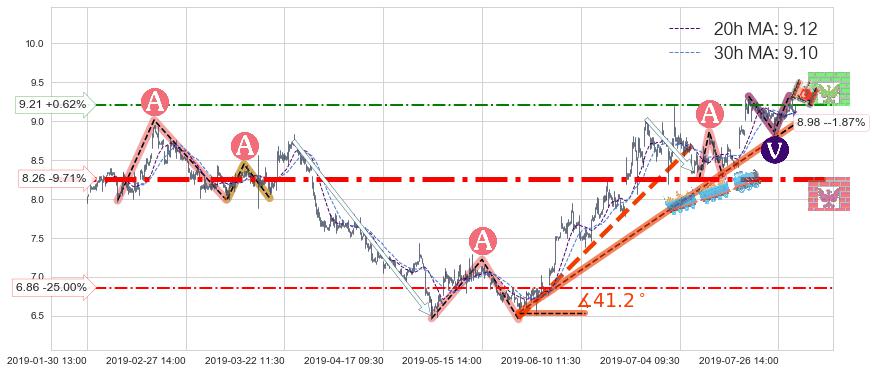 ♞ 20小时均线:9.12,30小时均线:9.10→ 快线>慢线