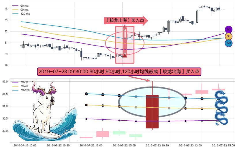 ⚀ 2019-07-23 09:30:00小时显现 60小时-90小时-120小时均线 【蛟龙出海】买入点 看多信号,后市看涨,买入
