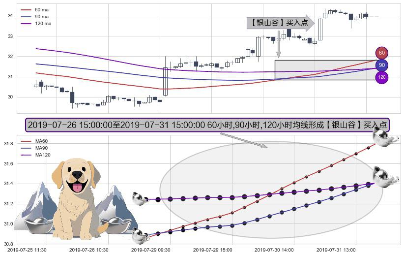⚀ 2019-07-29 09:30:00-小时至2019-07-31 15:00:00-小时显现 60小时-90小时-120小时均线 【银山谷】买入点 看多信号,后市看涨,买入