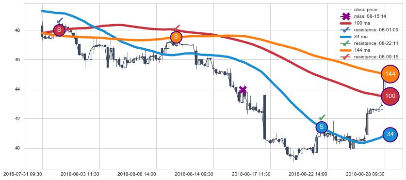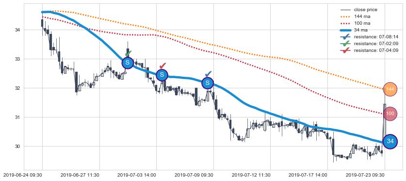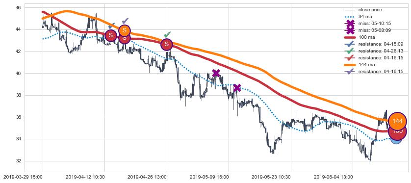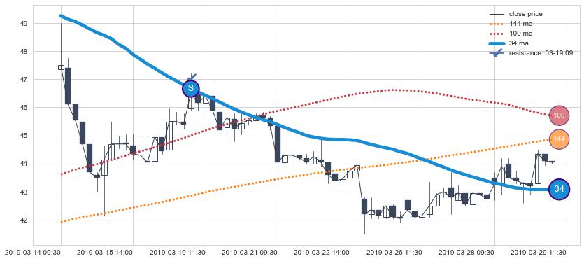 ⚂ 2019-06-14 09:30:00小时突然冒出一根大阴线,一下子下穿三条均线且收盘价收在各条均线之下