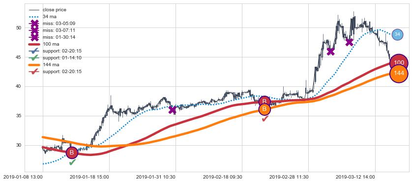 ⚅ 买点向上突破均线后,价格走势很纠结,不断在均线周围试探,有再次下探破位均线的可能