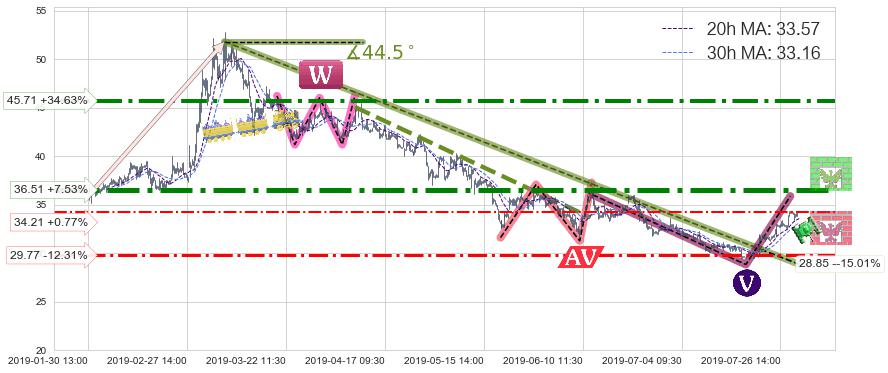♘ 支撑价格位29.77,可信任强度55.21%,距离最后交易2019-07-31 15:00形成的收盘价格33.95相差 -12.31%