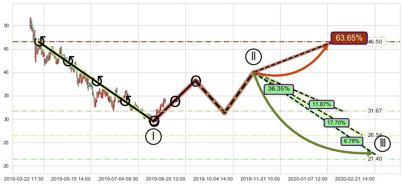 ➣ 大趋势循环浪继续向下概率36.35%