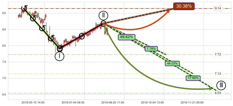➢ 循环浪继续向下【最高】位置(10-08:12, 7.72),匹配聚类样本比例11.17%, 可能性概率7.78%