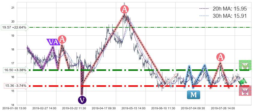 ♘ 阻力价格位16.50,可信任强度89.47%,距离最后交易2019-07-31 15:00形成的收盘价格15.96相差 +3.38%
