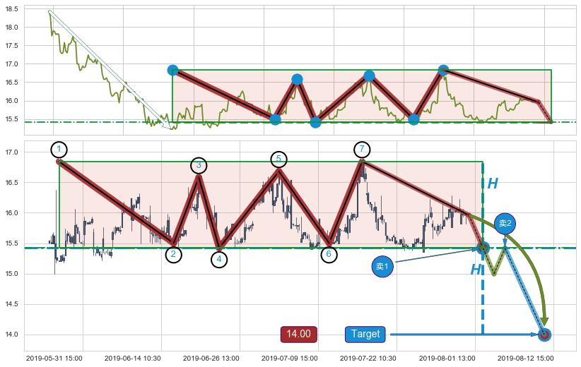 ➢ 【仅预测突破】最后价格:15.96与预测突破价格:15.42→【空间临近】后续最小【整理】第一目标价格→(08-12:15: 14.00 )
