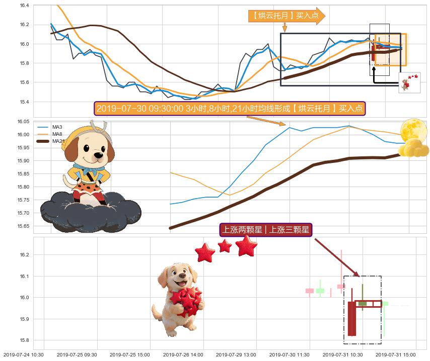 从2019-07-23 11:30至2019-07-25 15:00,共包含16个小时,阶段股价上涨3.72%,阶段股价变动位移路程比: 1 : 1.4