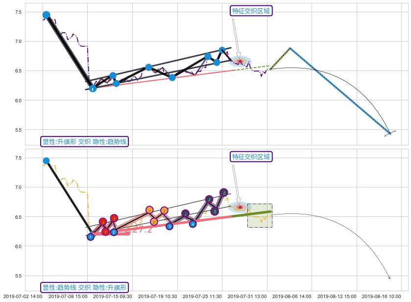 ➢ 最后的上涨趋势2019-07-09 11:30至2019-07-26 11:30:存在破位迹象,后续小调整或者反转下跌