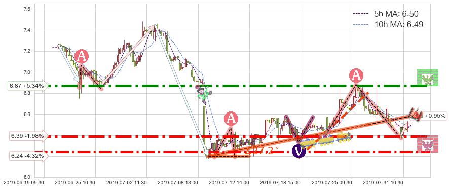 ♘ 阻力价格位6.87,可信任强度90.41%,距离最后交易2019-07-31 15:00形成的收盘价格6.52相差 +5.34%
