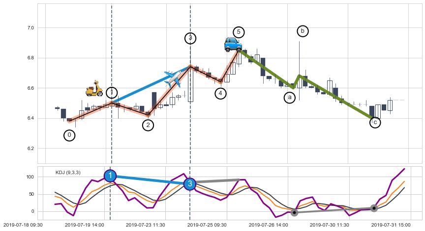 从2019-07-16 13:00至2019-07-19 15:00,共包含21个小时,阶段股价下跌-0.88%,阶段股价变动位移路程比: 1 : 10