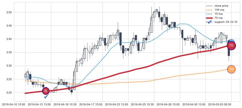上涨趋势04-10 15:00-05-03 09:30,均线70确认关键支撑1处