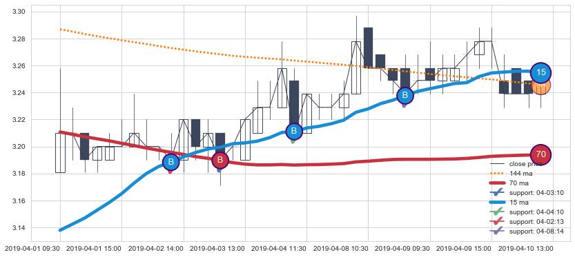 上涨趋势04-01 09:30-04-10 13:00,均线70, 15确认关键支撑4处
