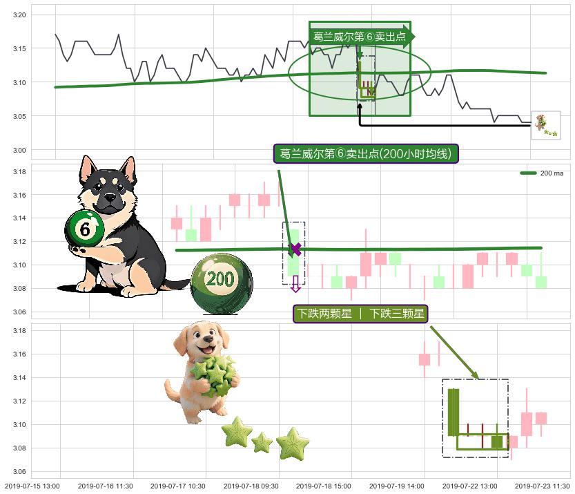 从2019-06-25 15:00至2019-07-22 13:00,共包含107个小时,阶段股价下跌-0.95%,阶段股价变动位移路程比: 1 : 35