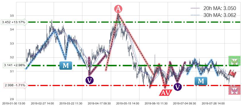 ♘ 阻力价格位3.141,可信任强度91.72%,距离最后交易2019-07-31 15:00形成的收盘价格3.050相差 +2.98%