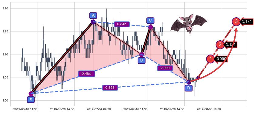 ➣ 已完成【蝙蝠】形态起点X: 06-05:15, 终点D: 07-29:14, 共216交易小时