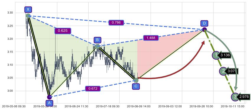 ➢ 距离预测D点位置有足够的上涨空间, 与看跌【伽利】形态相反,实际方向【看涨】