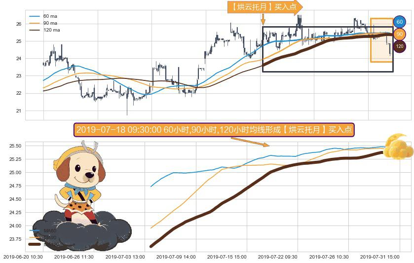⚀ 2019-07-04 09:30:00小时-2019-07-31 15:00:00小时显现 60小时-90小时-120小时均线 【烘云托月】买入点 看多信号,后市看涨,买入
