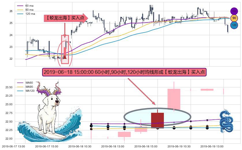 ⚀ 2019-06-18 15:00:00小时显现 60小时-90小时-120小时均线 【蛟龙出海】买入点 看多信号,后市看涨,买入