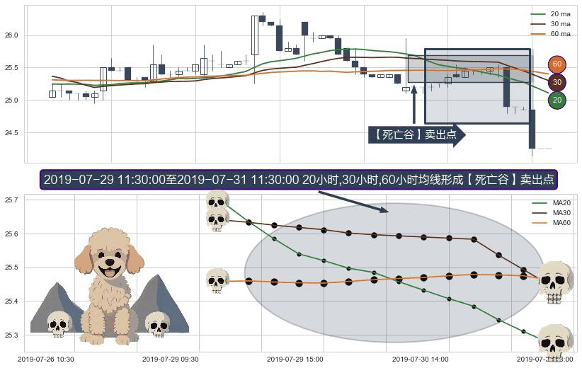 ⚀ 2019-07-29 13:00:00-小时至2019-07-31 11:30:00-小时显现 20小时-30小时-60小时均线 【死亡谷】卖出点 看空信号,后市看跌,卖出