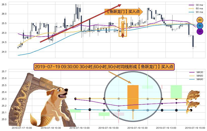 ⚀ 2019-07-19 09:30:00小时显现 30小时-60小时-90小时均线 【鱼跃龙门】买入点 看多信号,后市看涨,买入