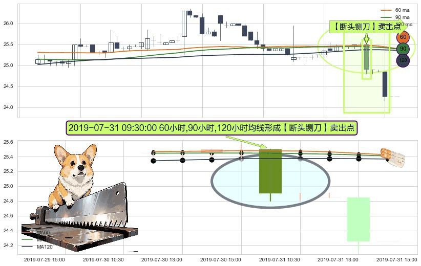 ⚀ 2019-07-31 09:30:00小时显现 60小时-90小时-120小时均线 【断头铡刀】卖出点 看空信号,后市看跌,卖出