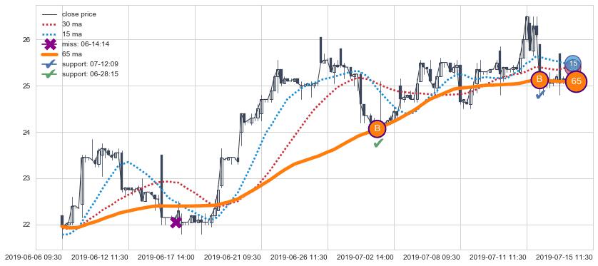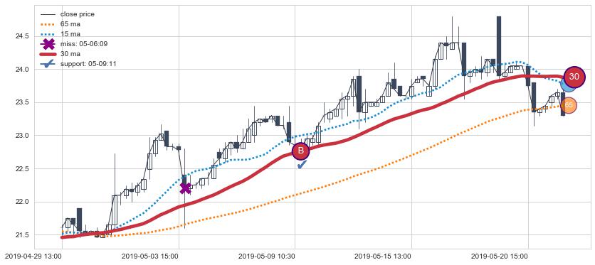 ⚃ 在破位点附近ma走势明显平稳迹象,稍后的走势中ma下垂迹象也出现,信号【可信度中等偏上】