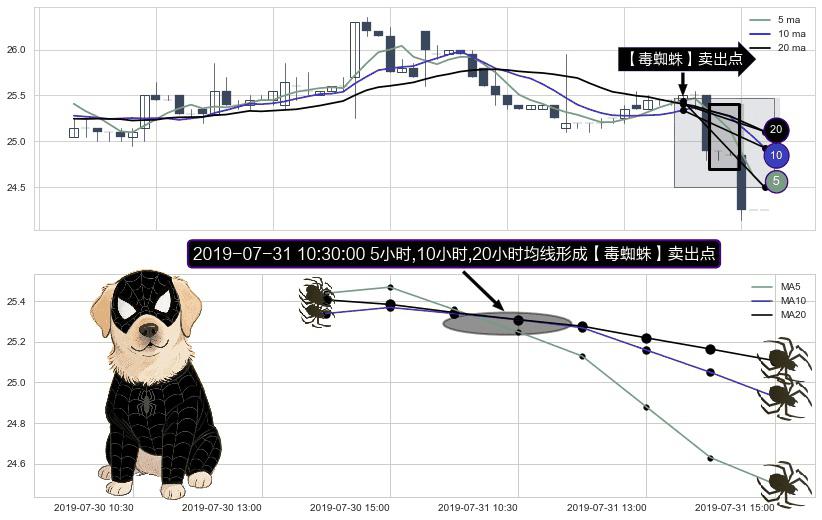 ⚀ 2019-07-31 10:30:00小时显现 5小时-10小时-20小时均线 【毒蜘蛛】卖出点 看空信号,后市看跌,卖出