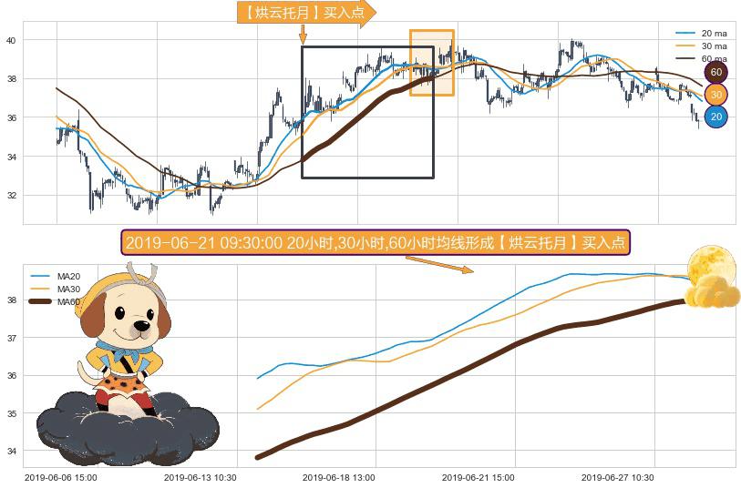 ⚀ 2019-06-13 14:00:00小时-2019-06-28 11:30:00小时显现 20小时-30小时-60小时均线 【烘云托月】买入点 看多信号,后市看涨,买入
