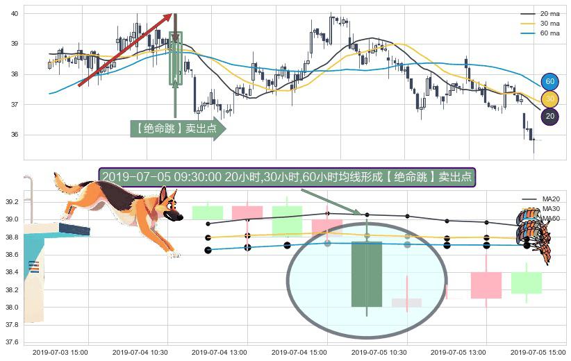 ⚀ 2019-07-05 09:30:00小时显现 20小时-30小时-60小时均线 【绝命跳】卖出点 看空信号,后市看跌,卖出