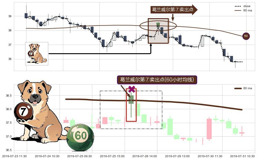 ⚀ 2019-07-26 09:30:00-小时显现 葛兰威尔均线 60小时均线 第⑦卖出点 下降趋势的中继信号,后市看跌,卖出信号