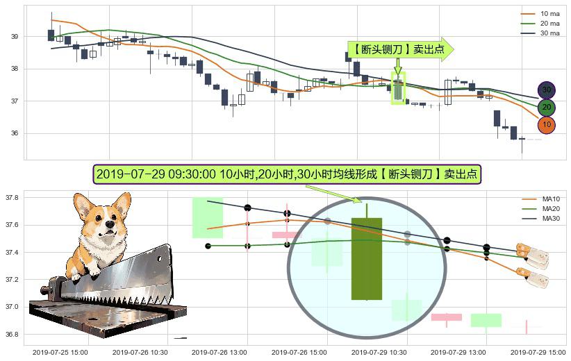 ⚀ 2019-07-29 09:30:00小时显现 10小时-20小时-30小时均线 【断头铡刀】卖出点 看空信号,后市看跌,卖出