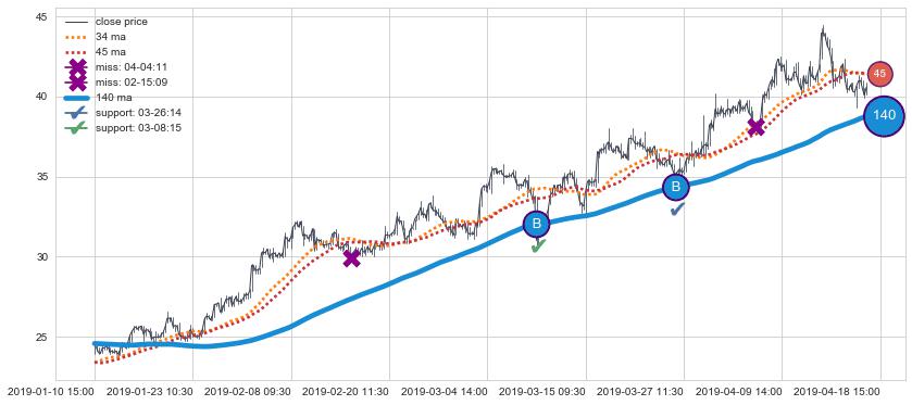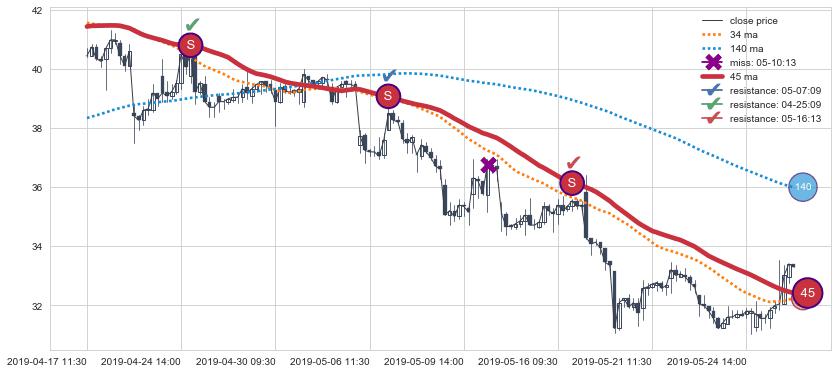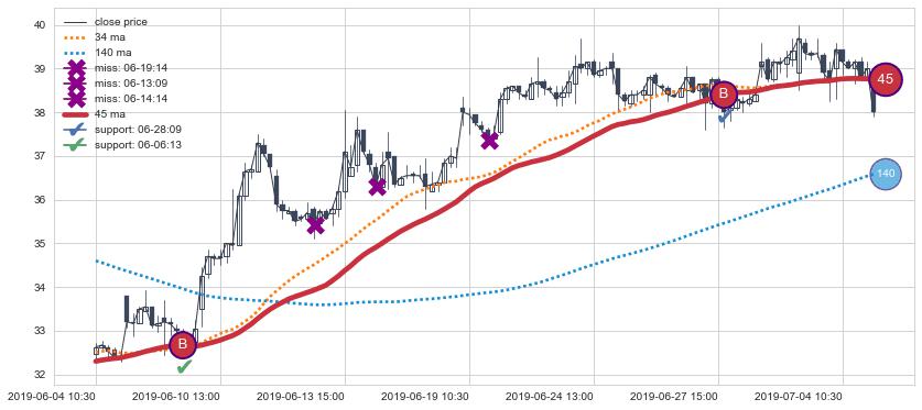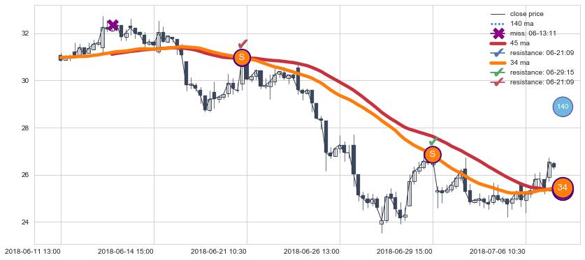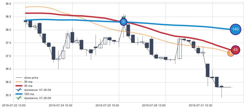 ⚃ 在破位点附近ma走势已有下垂迹象,稍后的走势中ma下降趋势明显,信号【可信度高】