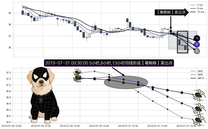 ⚀ 2019-07-31 09:30:00小时显现 5小时-8小时-13小时均线 【毒蜘蛛】卖出点 看空信号,后市看跌,卖出
