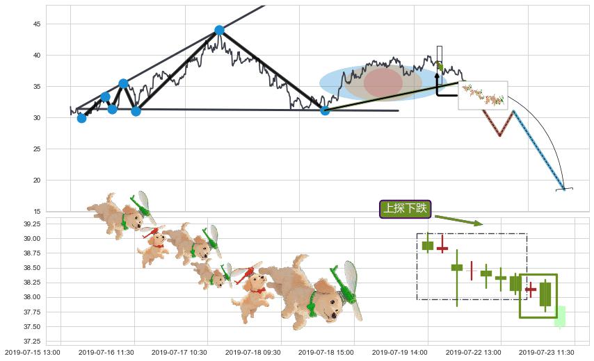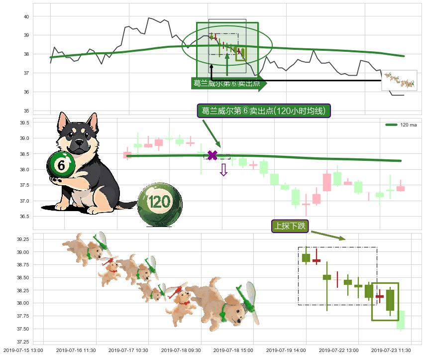 从2019-07-23 13:00至2019-07-31 15:00,共包含39个小时,阶段股价下跌-2.76%,阶段股价变动位移路程比: 1 : 7