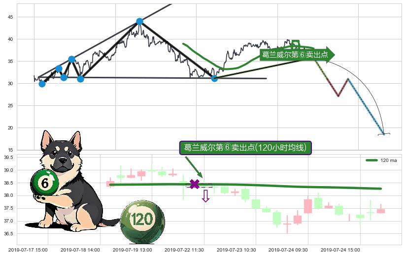 | 9 🅚:葛兰威尔第⑥卖出点 ➕ 🌊:波浪理论下跌5浪延续:猜想C点强阻力小反弹终止,猜想保持下跌5浪方向下行(均值回复后大周期继续趋势跟踪) ☞ 看空信号 ⇥ 【均线】交织【图形】⇥ 综合量化分数: 35 | > |